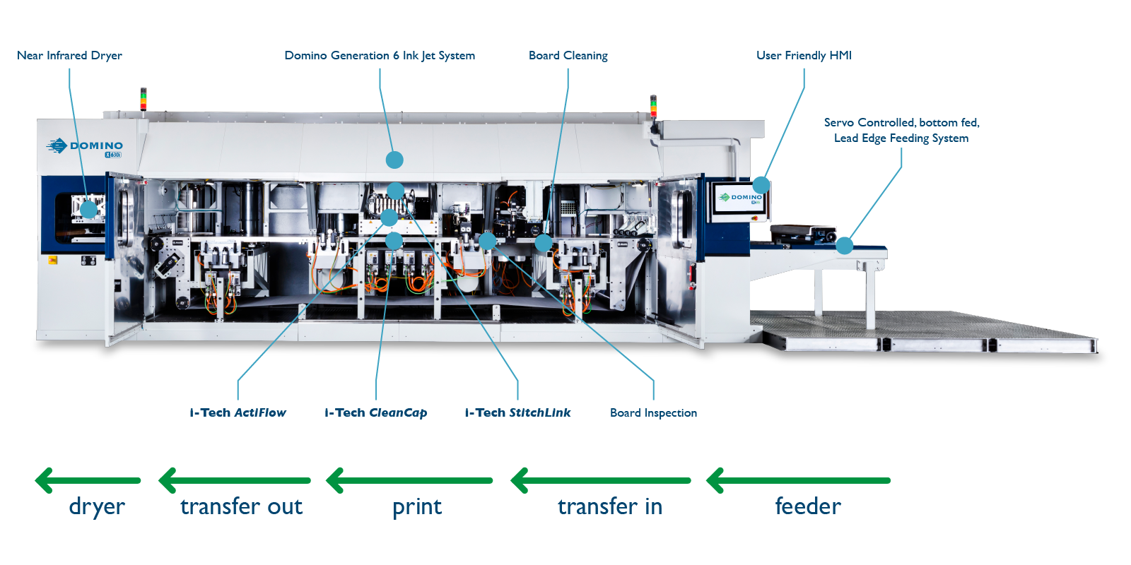 The X630i is based on Domino’s proven Generation 6 inkjet platform, now approaching 1,000 industrial inkjet installations. With over 40 years of inkjet development experience, the X630i includes unique Domino intelligent Technology or i-Tech components, combining to create a system altogether more flexible and reliable. i-Tech CleanCap is an automated inkjet cleaning and capping solution for reduced maintenance. i-Tech ActiFlow provides continuous ink recirculation, for more consistent print results. i-Tech StitchLink achieves precise print head alignment to deliver the highest quality print results.