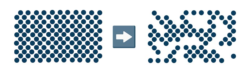 Like other 2D codes, DotCodes have a ‘finder pattern’, this can be seen in the two corners of the code which contain data dots – the location of these dots allows a data reader, or scanner, to know where to start reading the data.