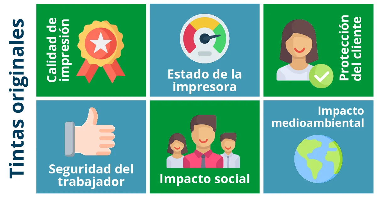Existe la posibilidad de que otros proveedores de tinta operen sin respetar las normativas, y podrían utilizar materiales, maquinaria y procesos no sostenibles o contaminantes para el medioambiente para producir tintas baratas. El uso de tintas no originales y no probadas también puede crear residuos innecesarios debido a códigos de mala calidad, lo que agrava aún más el impacto medioambiental.