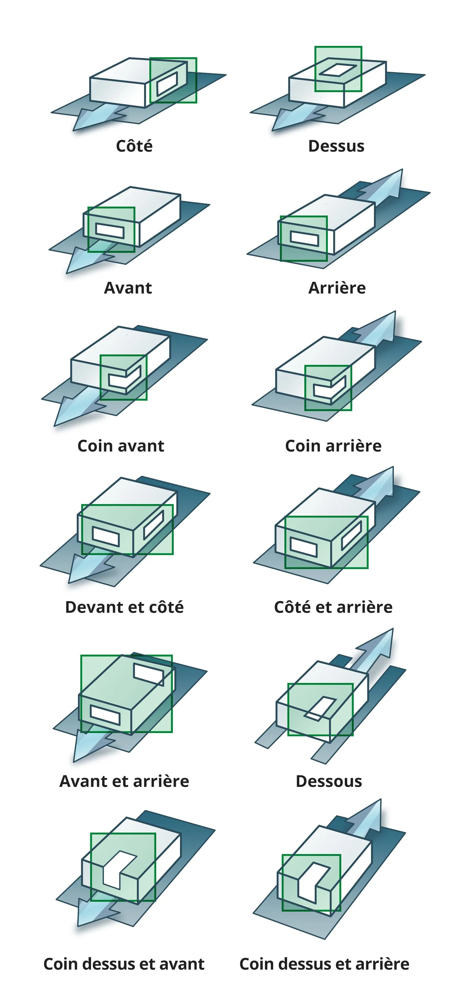 La technologie d'impression-pose d'étiquettes Domino est conçue pour offrir de multiples options permettant de placer les étiquettes sur les produits, en ligne. Les étiquettes peuvent être imprimées et apposées sur les côtés, le haut, l'avant, l'arrière, le fond ou sur un coin. Il est également possible d'appliquer plusieurs étiquettes sur un même produit. Pour vous aider, consultez notre guide ci-dessous :